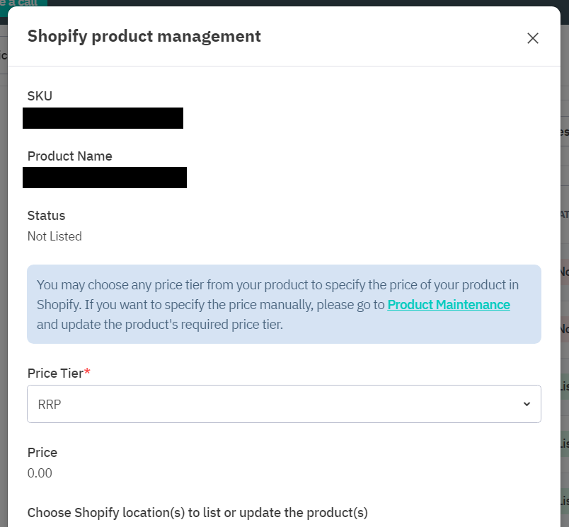 - Choose the various Shopify Locations you want to list the products using the checkboxes.
