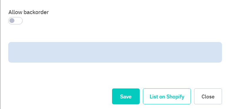 - Select if you wish for the product to allow backorder on Shopify or not.